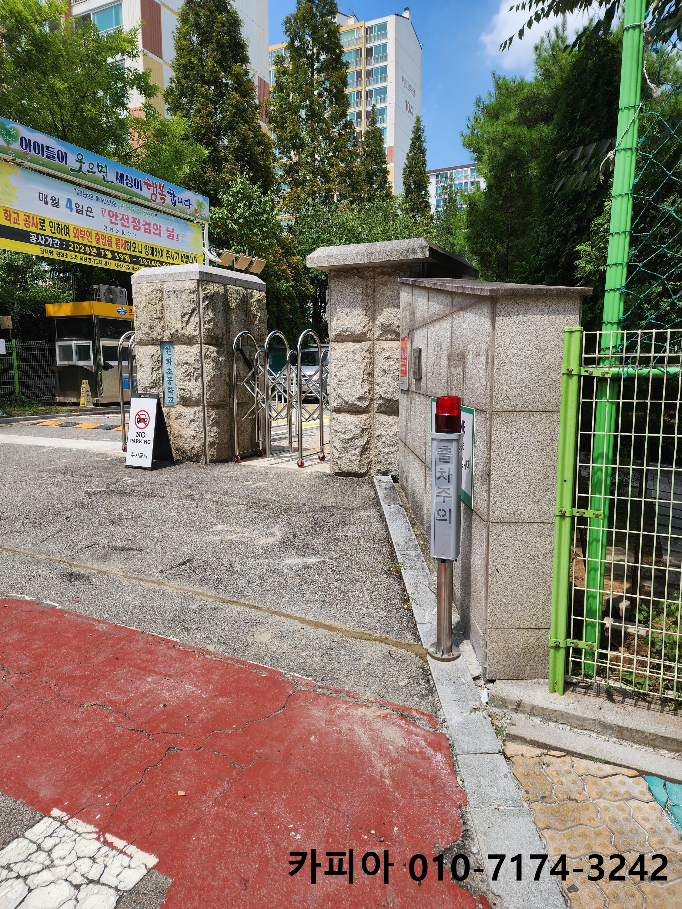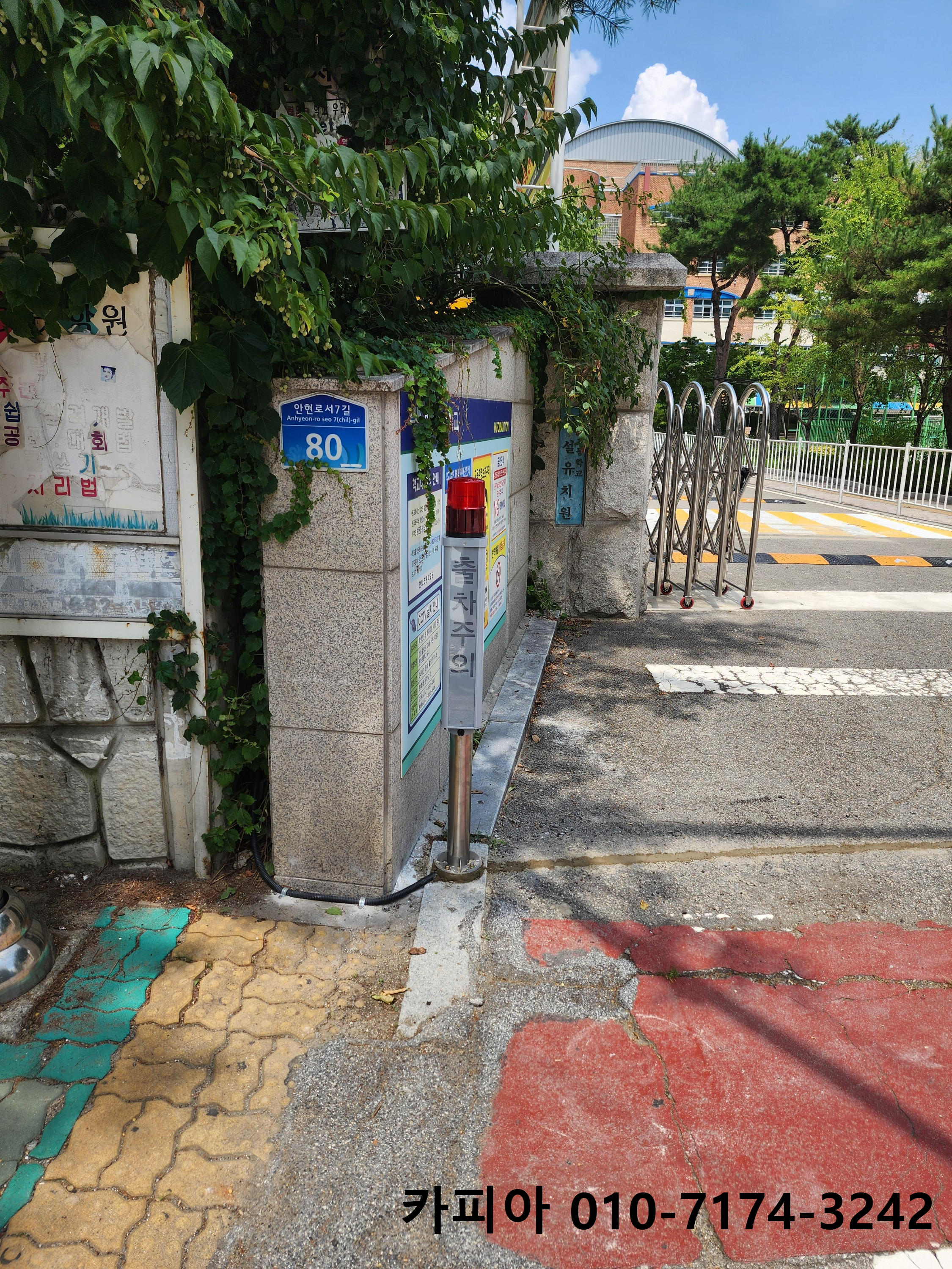평택 안중 현화초등학교 어린이보호구역 정문 출차주의 차량주의등 차량경보등 설치