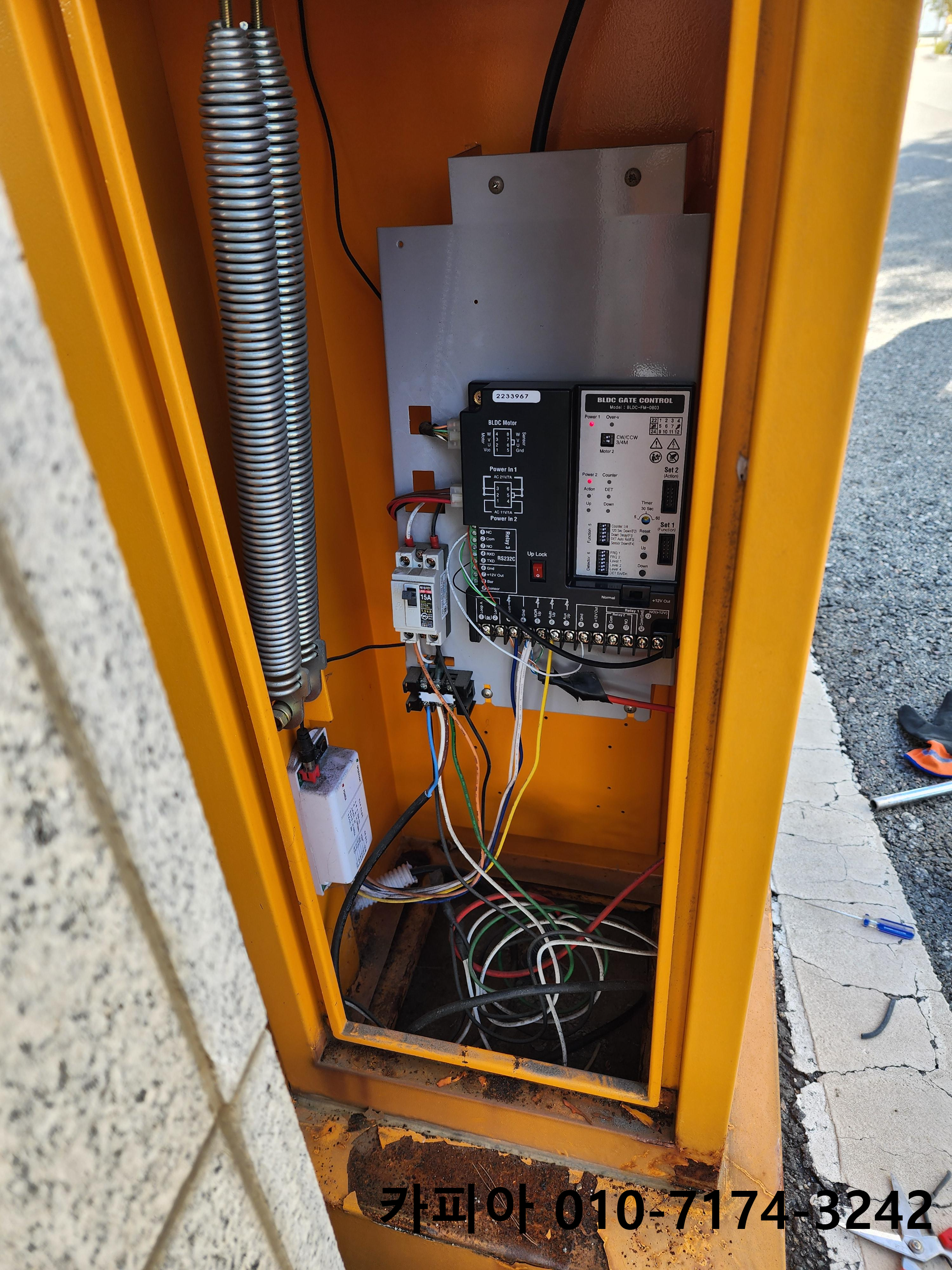 경기도 안성 - 데상트 물류센터 주차차단기바 차량접촉사고로 인해 파손 교체 및 차단기 보드교체 완료