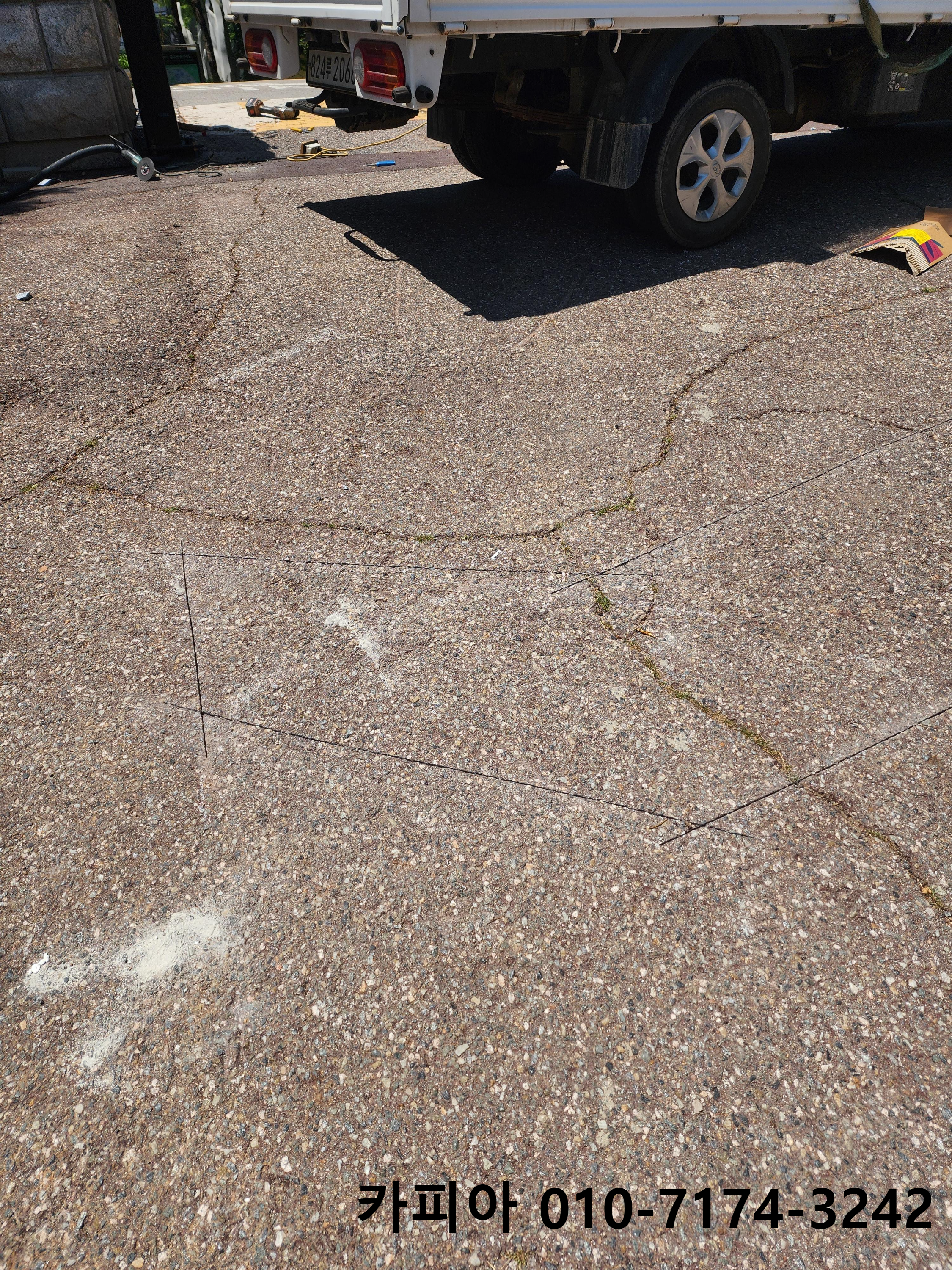 주차차단기 차량 감지용 루프코일 시공입니다.